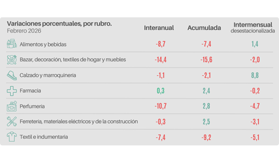 Este resultado representa el tercer mes consecutivo de contracción interanual, lo que arroja una baja acumulada del 1,7% para el primer bimestre del año.